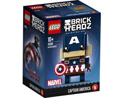LEGO BrickHeadz 41589 Captain AmericaBouw zelf de patriottische supersoldaat Captain America uit de Marvel blockbuster Captain America: Civil War met dit nieuwe LEGO BrickHeadz bouwbare personage dat in maart 2017 op de markt komt. Bewonder de kenmerkende details op zijn kostuum en helm en maak zijn beroemde, onverwoestbare schild vast...